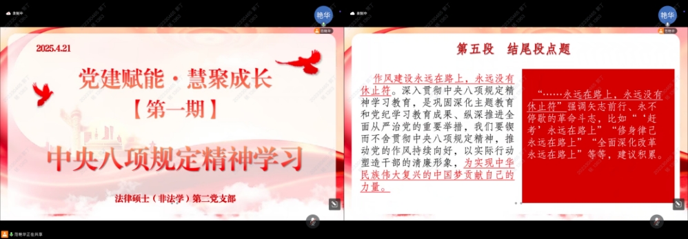 党建赋能·汇聚成长 | 法律硕士(非法学)第二党支部开展贯彻中央八项规定精神学习教育
