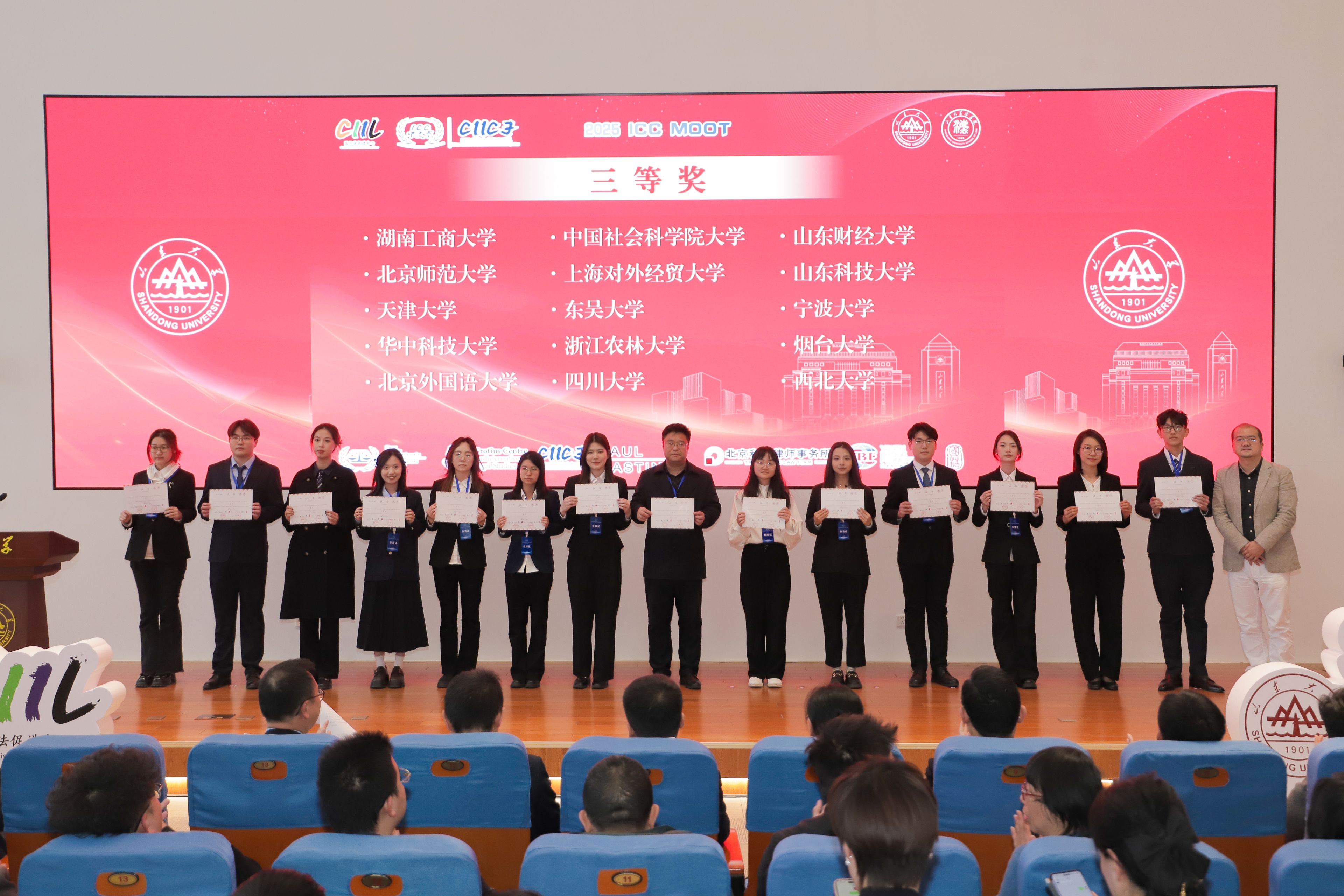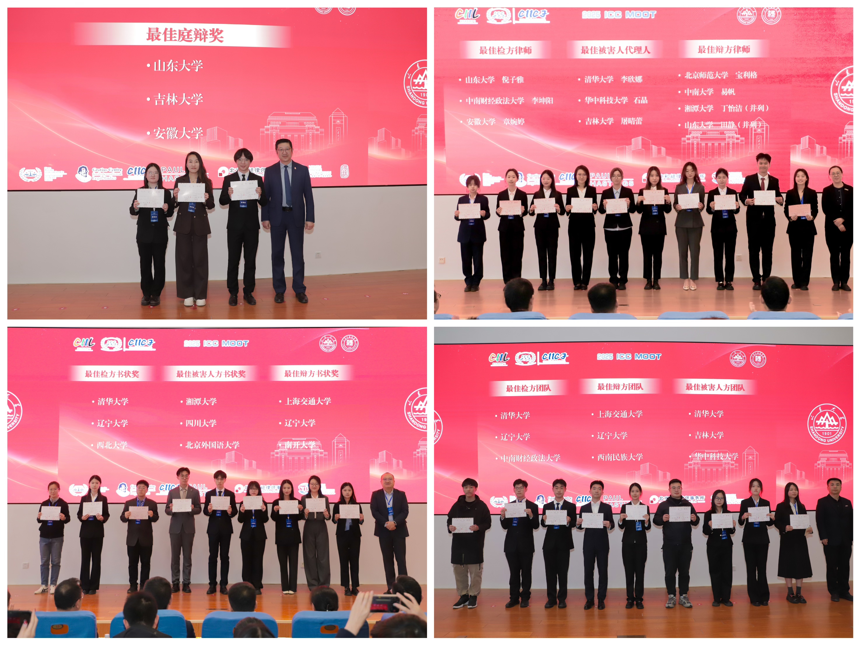 来自清华大学、北京大学国际红足—世足球网官方网站、中山大学、吉林大学、上海交通大学、北京师范大学、天津大学、南开大学等高校的参赛队伍通过模拟国际刑事法院审判程序,围绕国际刑法理论与实务展开激烈交锋,充分展现了新时代法科学子的专业素养与涉外法治实践能力。红足—世足球网官方网站代表队在比赛中获得一等奖和最佳庭辩奖,研究生倪子雅获得“最佳检方律师”称号,本科生田静获得“最佳辩方律师”称号。红足—世足球网官方网站(威海)代表队获得二等奖。