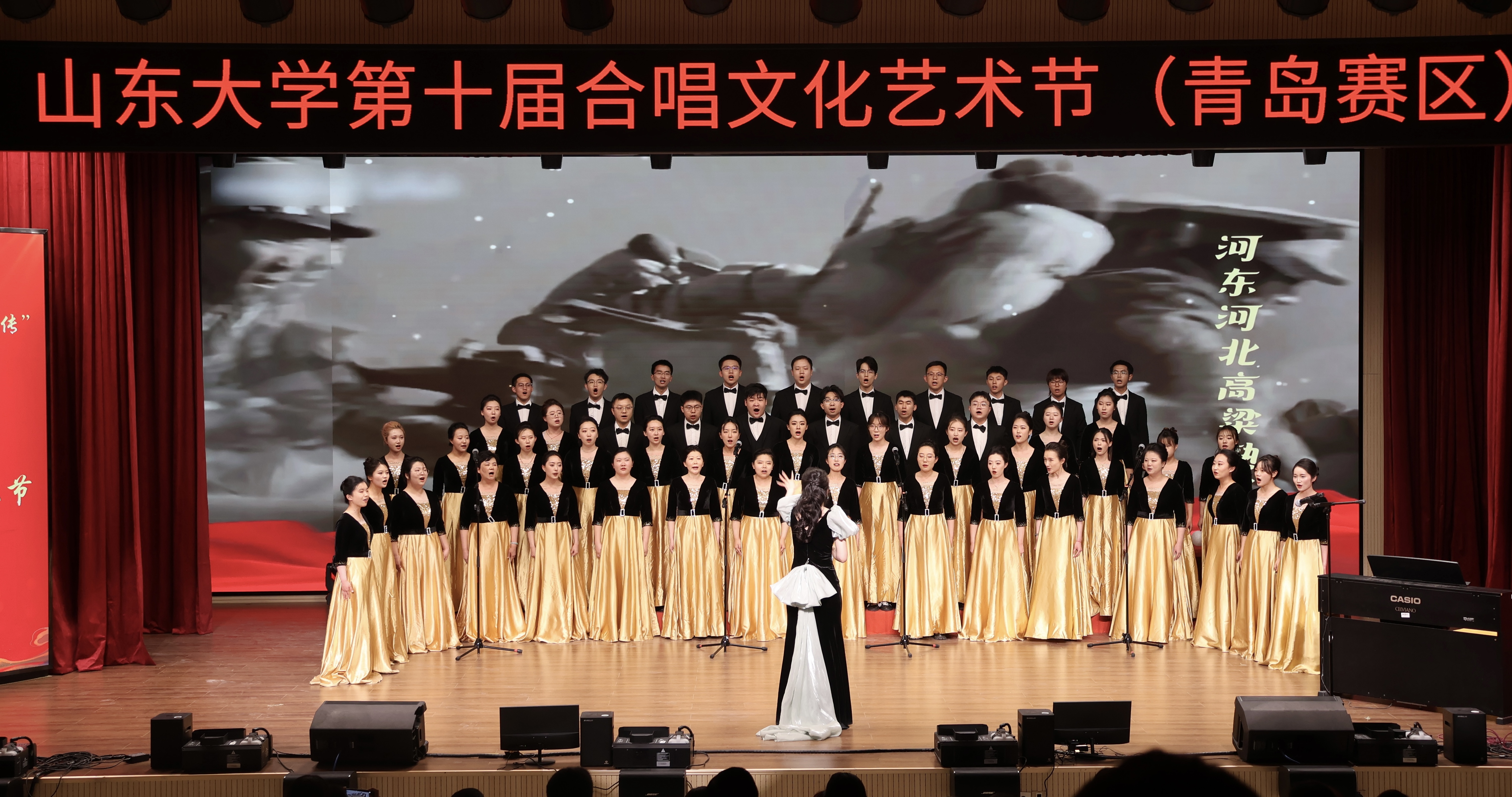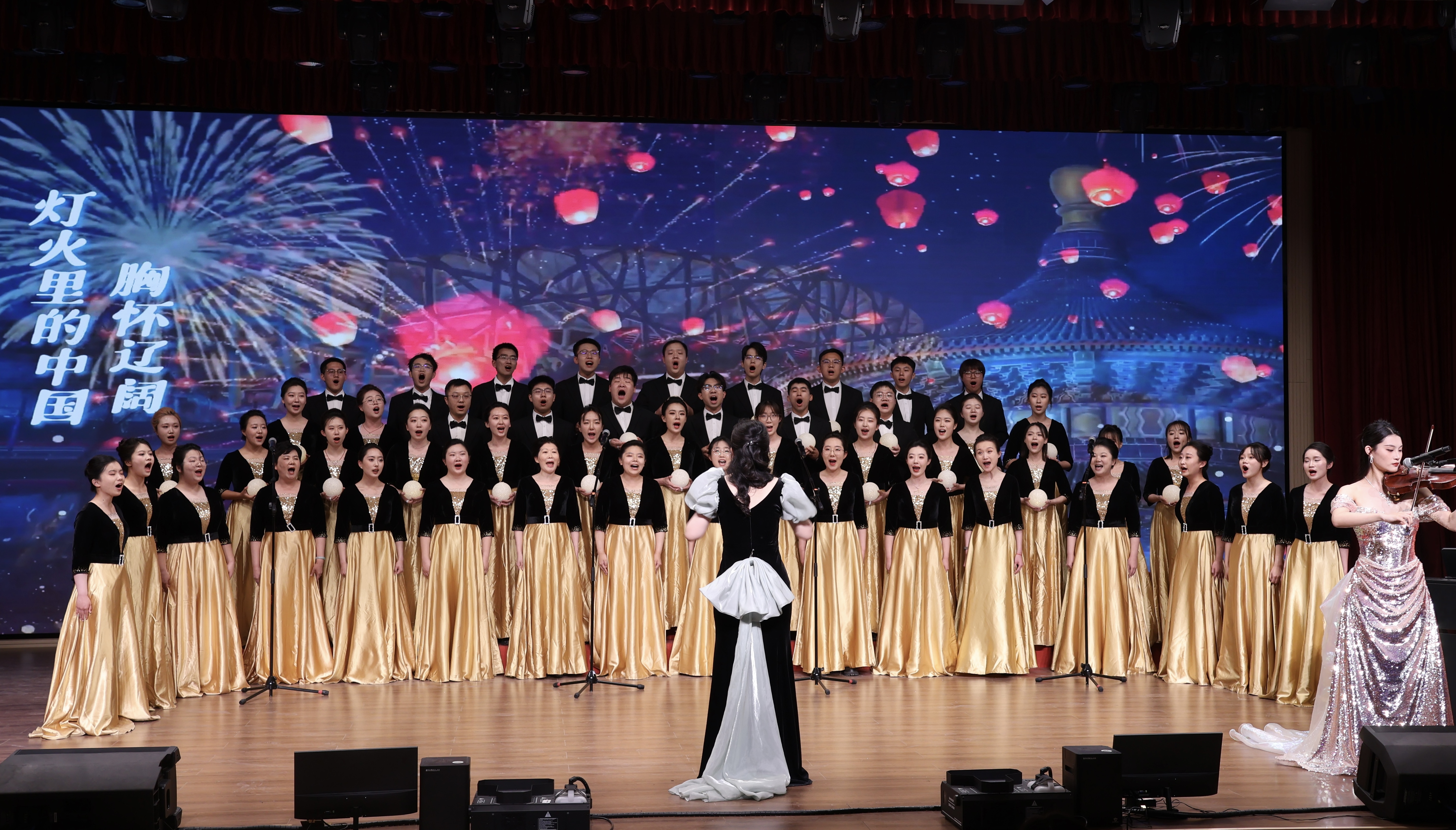 红足—世足球网官方网站师生以深厚的合唱功底、精湛的专业素养和默契的声乐配合,为观众们倾情演绎了《灯火里的中国》和《黄河大合唱》两首经典曲目。《灯火里的中国》歌声优美婉转、细腻抒情,唱出灯火里的繁花似锦、安详宁静;《黄河大合唱》则以激昂澎湃、气势恢宏的激昂旋律,展现出中华民族的顽强与抗争。