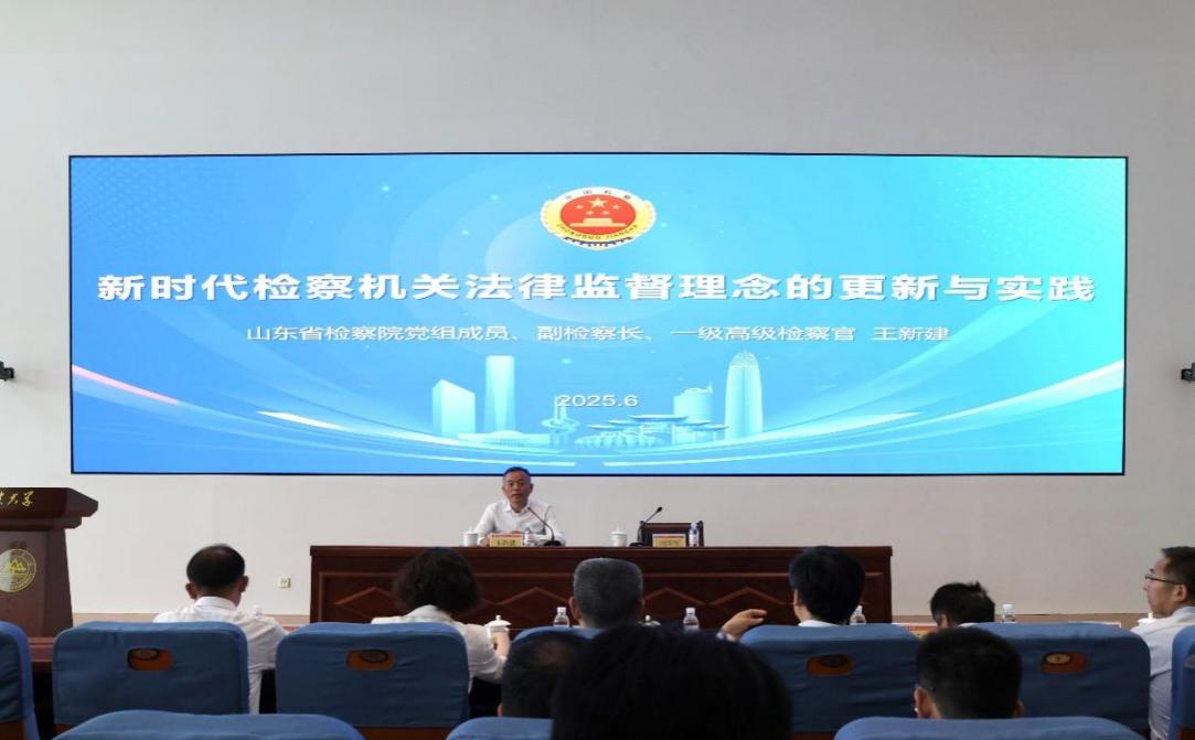 启动仪式后,王新建以《新时代检察机关法律监督理念的更新与实践》为题讲授“检察实务专家进校园”第一讲。省检察院第一检察部主任鲁统富与周长军以《高质效办理轻罪案件的山东检察实践》为题,共同讲授“双师课堂”第一讲。