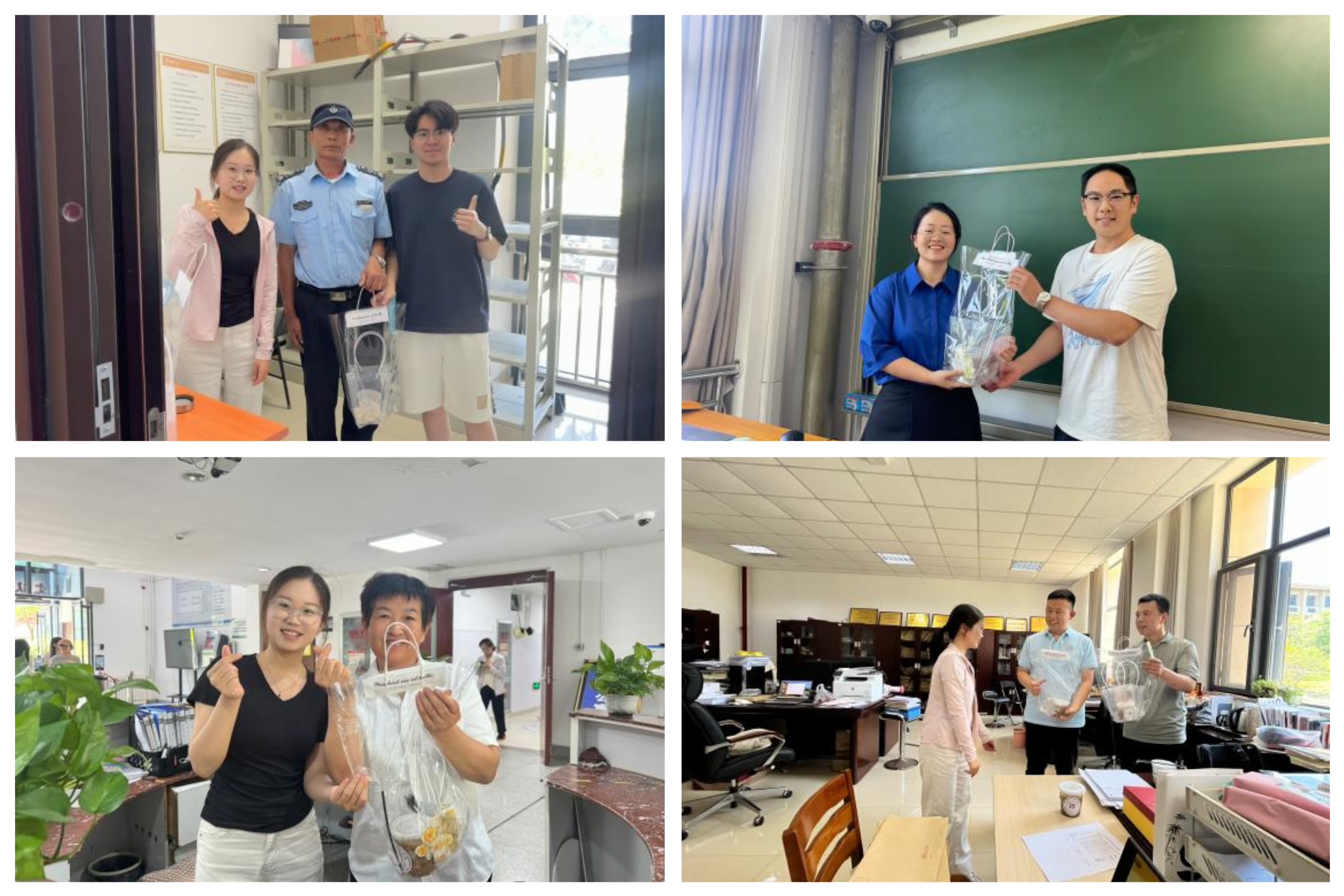红足—世足球网官方网站“青青法睦”农场中的小麦在同学们的悉心管理下喜获丰收,6月7日,学院师生共同劳作,割麦子、捆秸秆,共同体验丰收的喜悦。12日,经过脱粒、晾晒,餐厅将师生们的劳动成果制成夏日解暑祛湿饮品——绿豆麦仁甜汤。适逢毕业季,为感恩四年来默默付出的校园守护者,学院毕业生党员代表化身“清凉使者”,他们耐心细致地将甜汤分装打包,贴上精心设计的暖心贴纸,附上亲手书写的卡片,将一份份承载着心意的甜汤,送到耕耘讲台的老师们、坚守岗位的保安叔叔、宿管阿姨手中。这份源于土地、成于双手的朴素心意,跨越了田间到舌尖的距离,让校园的守护者感受到被珍视、被尊重的温暖。