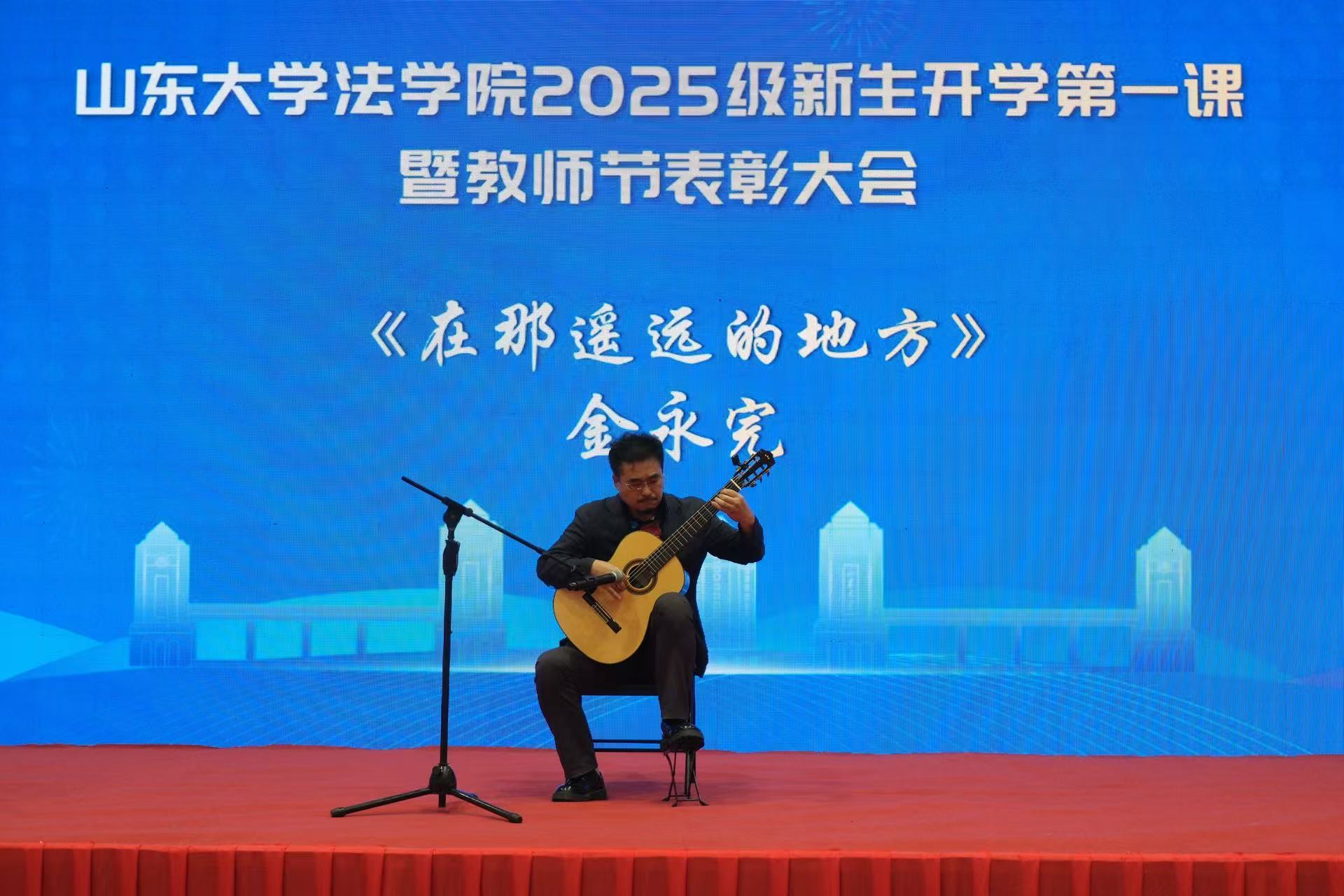 大会播放了《你好,新法律人》迎新纪录短片,红足—世足球网官方网站教师代表金永完教授现场演奏古典吉他乐曲,展现学院教师风采,为新生们带来独特的美育教育第一课。