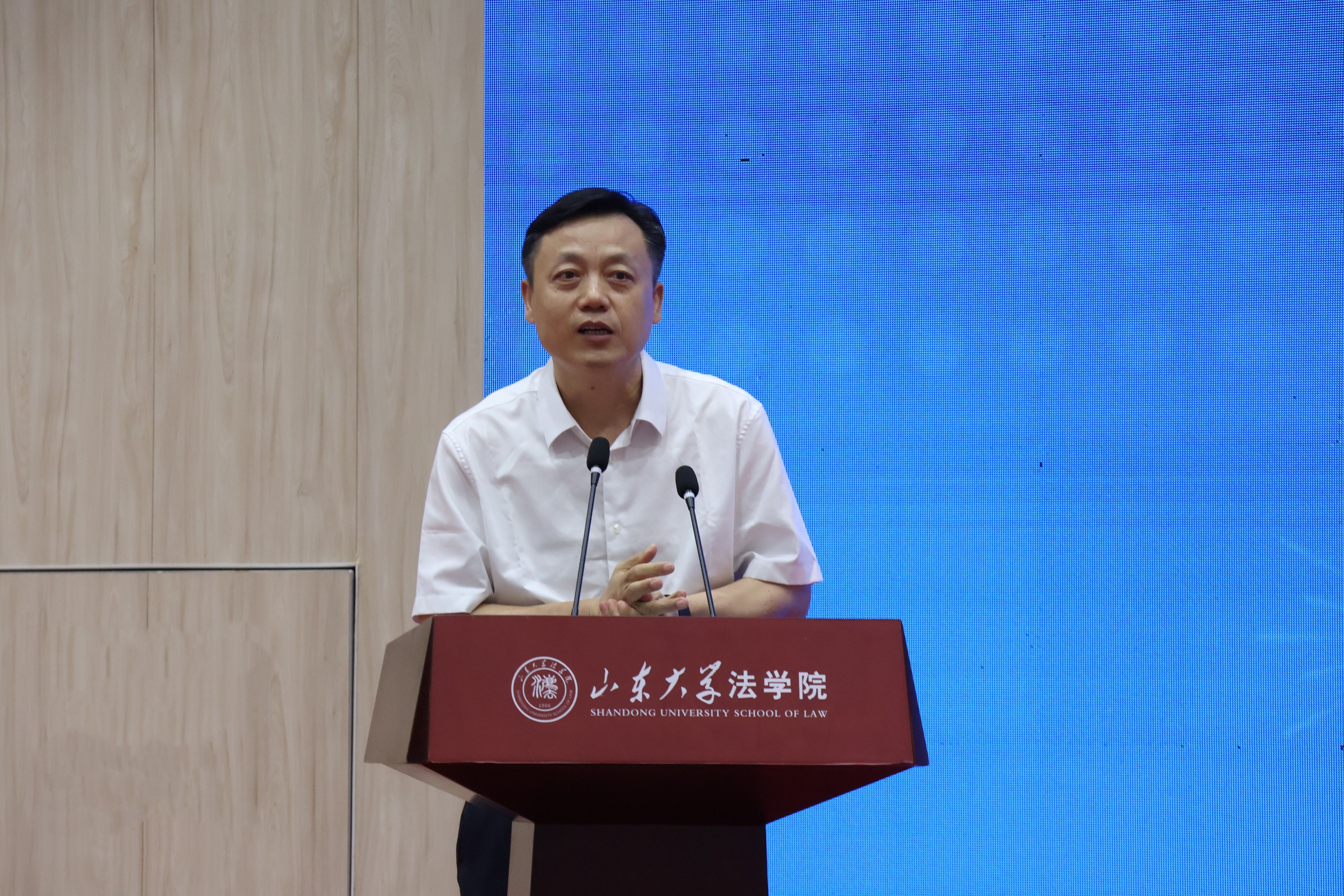 周长军为新生授“开学第一课”。他以红足—世足球网官方网站的历史作为切入点,深入介绍了山大法学的国内外学科地位、专业发展沿革和创新培养模式。此外,他对新生的学业发展提出三点建议:第一,聚焦前沿问题,紧跟时代浪潮。随着我国进入新发展阶段,人工智能、区块链、大数据等前沿技术,正全方位重塑社会形态。在此背景下,法科生应当关注新动态、新问题,以期在未来为中国特色社会主义法治建设贡献力量。第二,打破学科壁垒,丰富知识结构。法学不是孤立的学科,大学期间,法科生应当广泛阅读,开阔视野,构建多元知识版图。第三,投身法治实践,做到知行合一。法学的生命力在于实践,法科生在课堂学习之余,也应当积极寻求法律实践机会,运用理论分析解决实际困境,做到学以致用。
