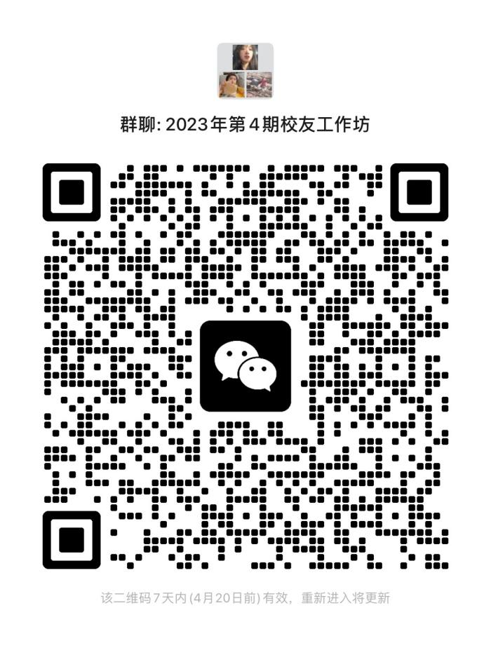 有意向线下参与本次校友工作坊活动的同学,请扫描下方小程序二维码进行报名。报名开始时间为4月15日20:00。