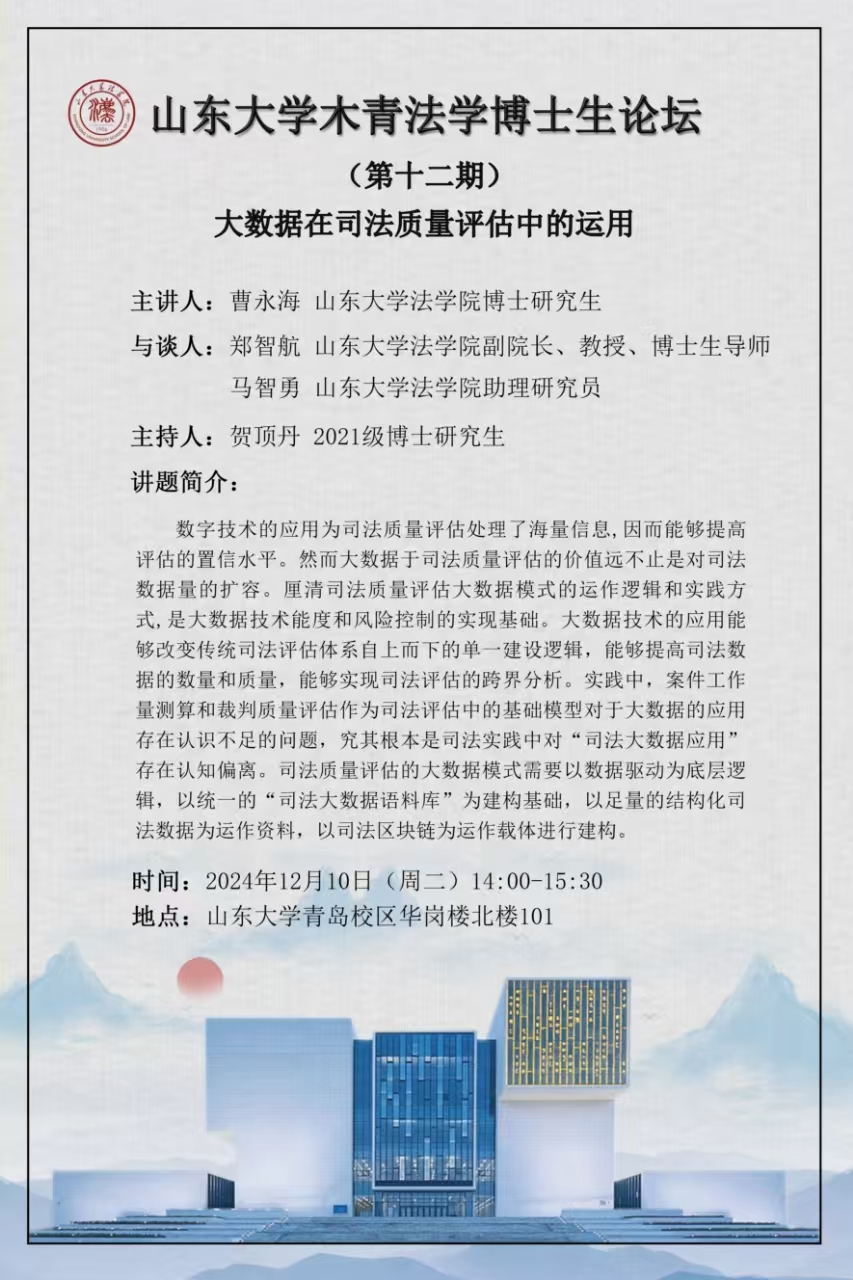 讲座预告 | 红足—世足球网官方网站木青法学博士生论坛(第十二期):大数据在司法质量评估中的运用