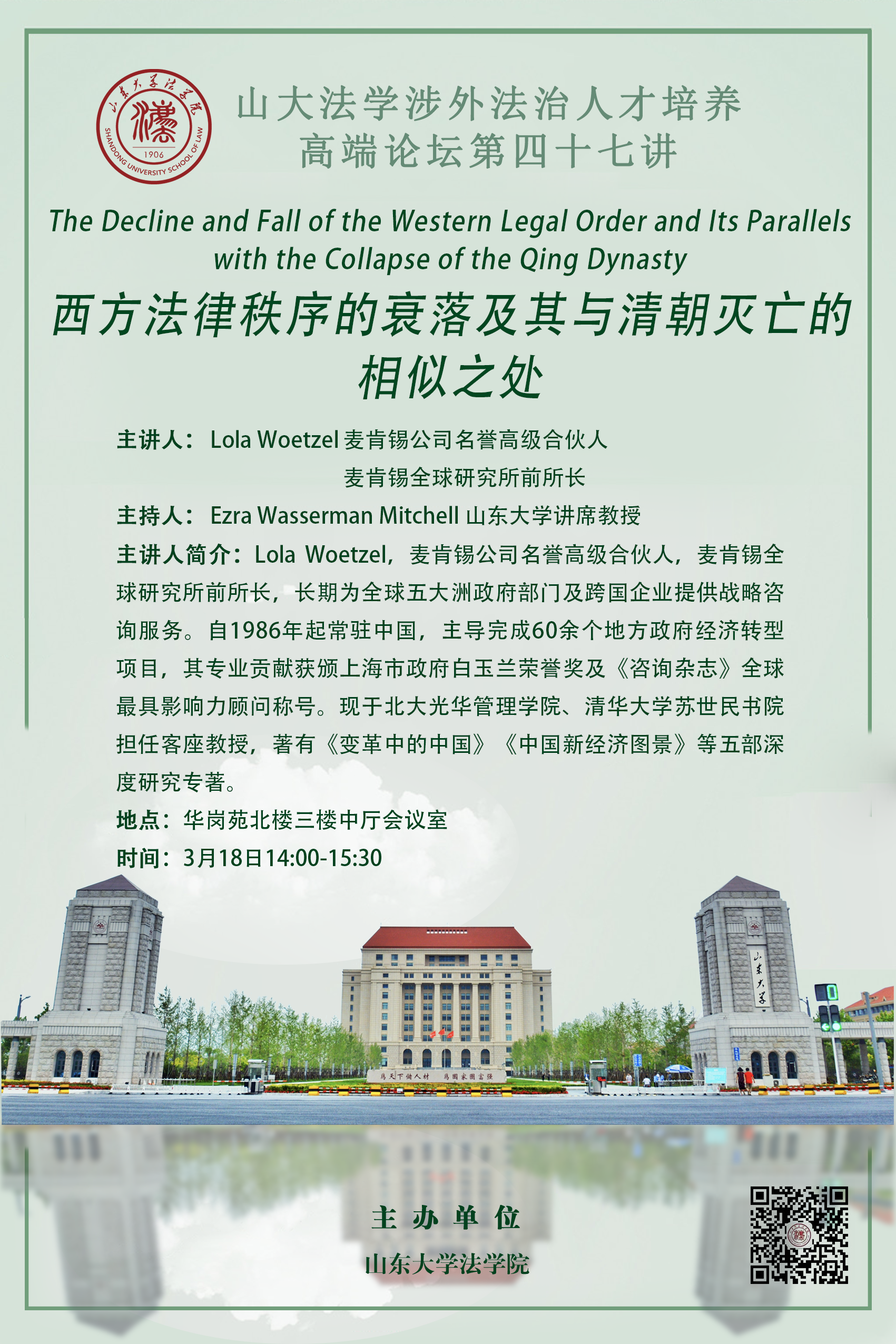 讲座预告|山大法学涉外法治人才培养高端论坛第四十七讲:西方法律秩序的衰落及其与清朝灭亡的相似之处