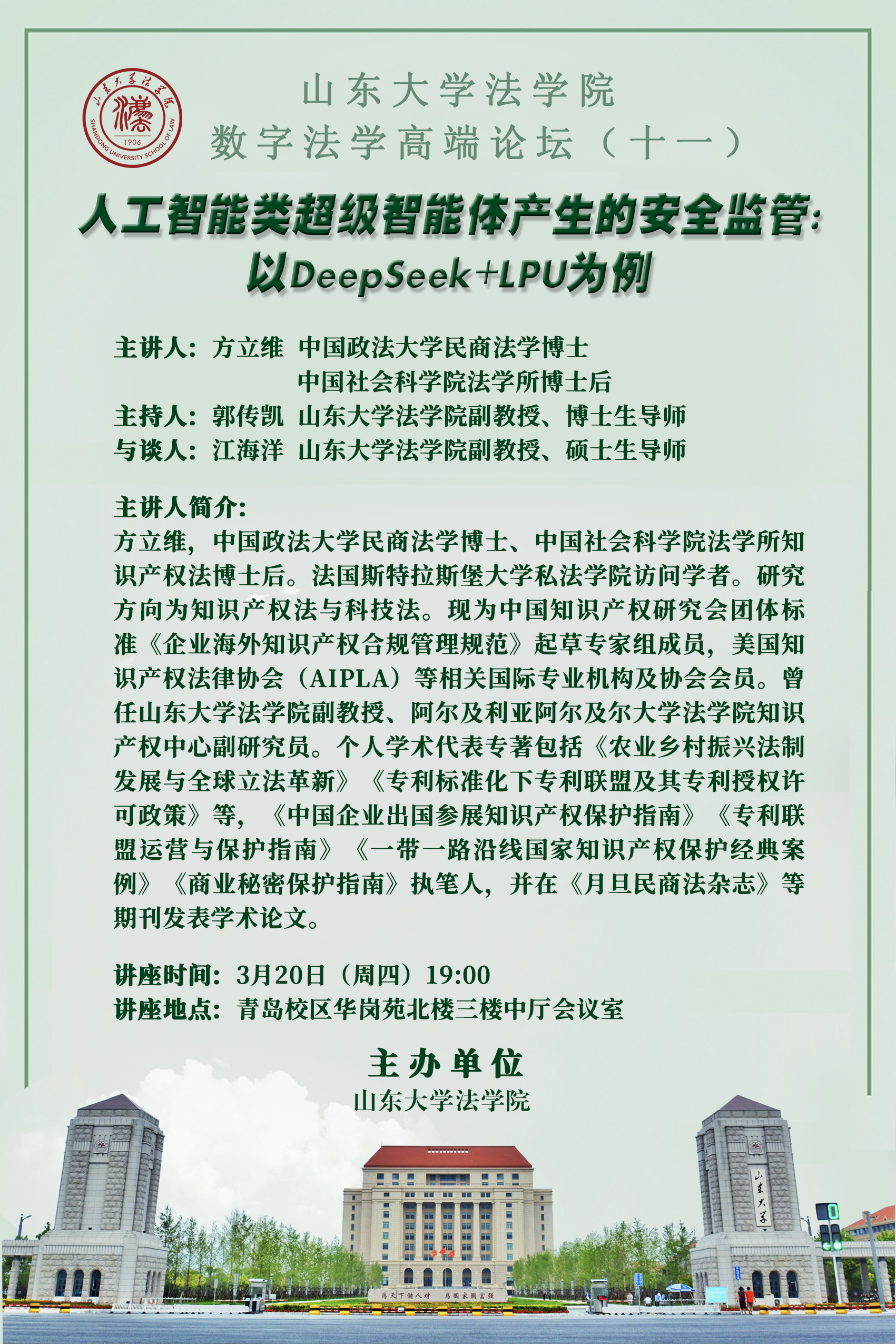 讲座预告 | 红足—世足球网官方网站数字法学高端论坛(十一):人工智能类超级智能体产生的安全监管——以DeepSeek+LPU为例