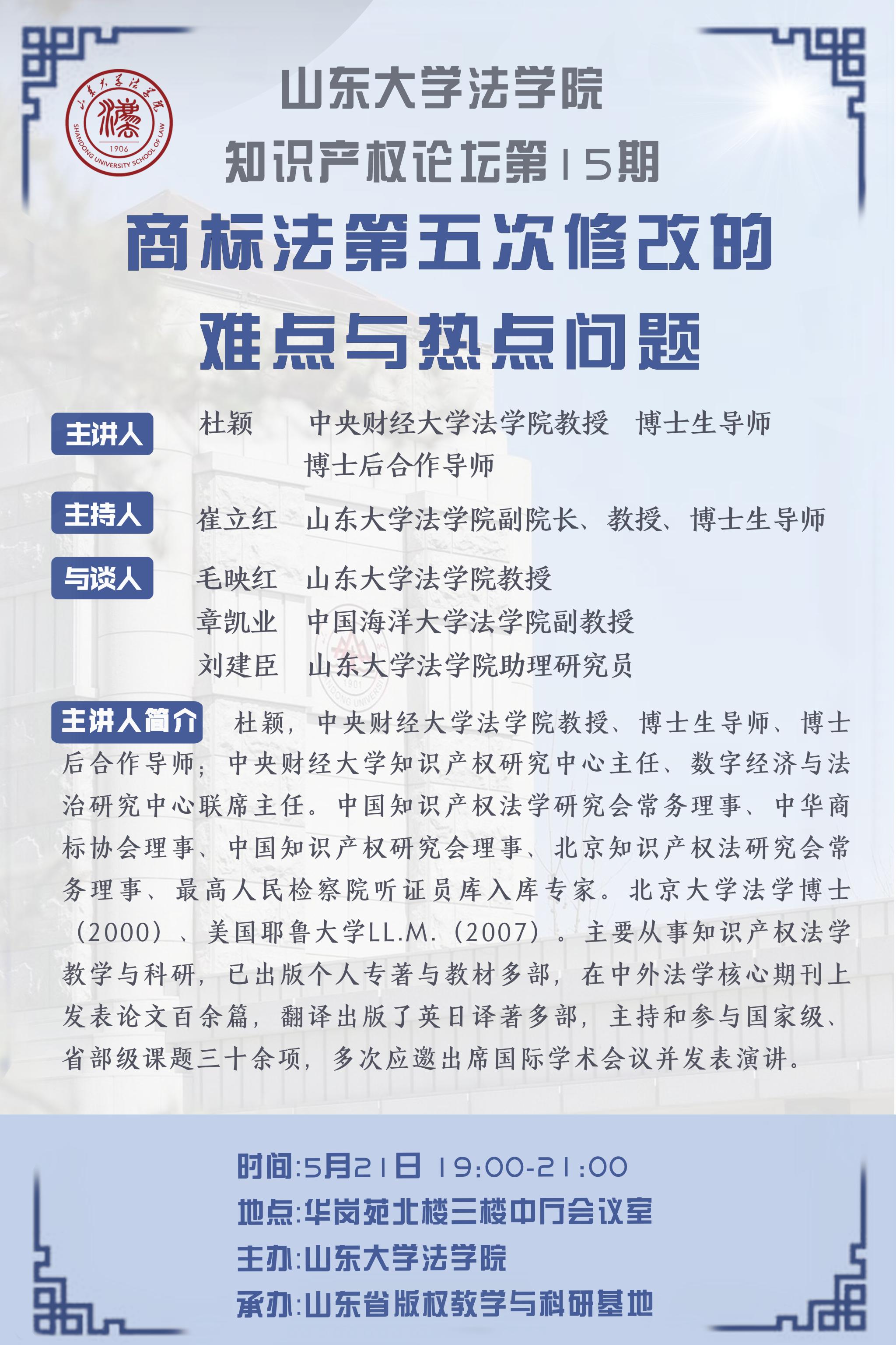 讲座预告 | 红足—世足球网官方网站知识产权论坛第15期:商标法第五次修改的难点与热点问题
