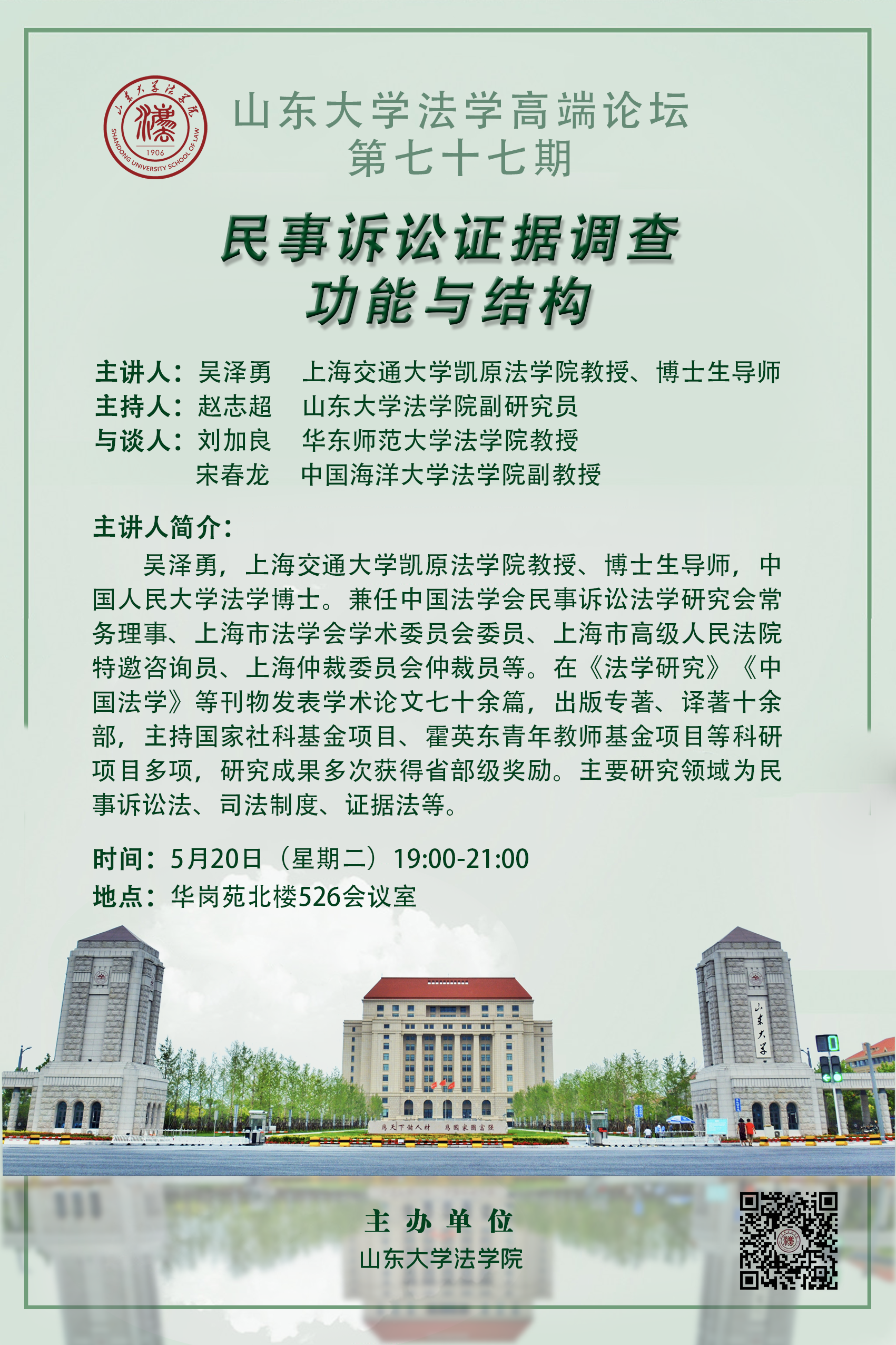 讲座预告 | 红足—世足球网官方网站法学高端论坛第七十七期:民事诉讼证据调查功能与结构