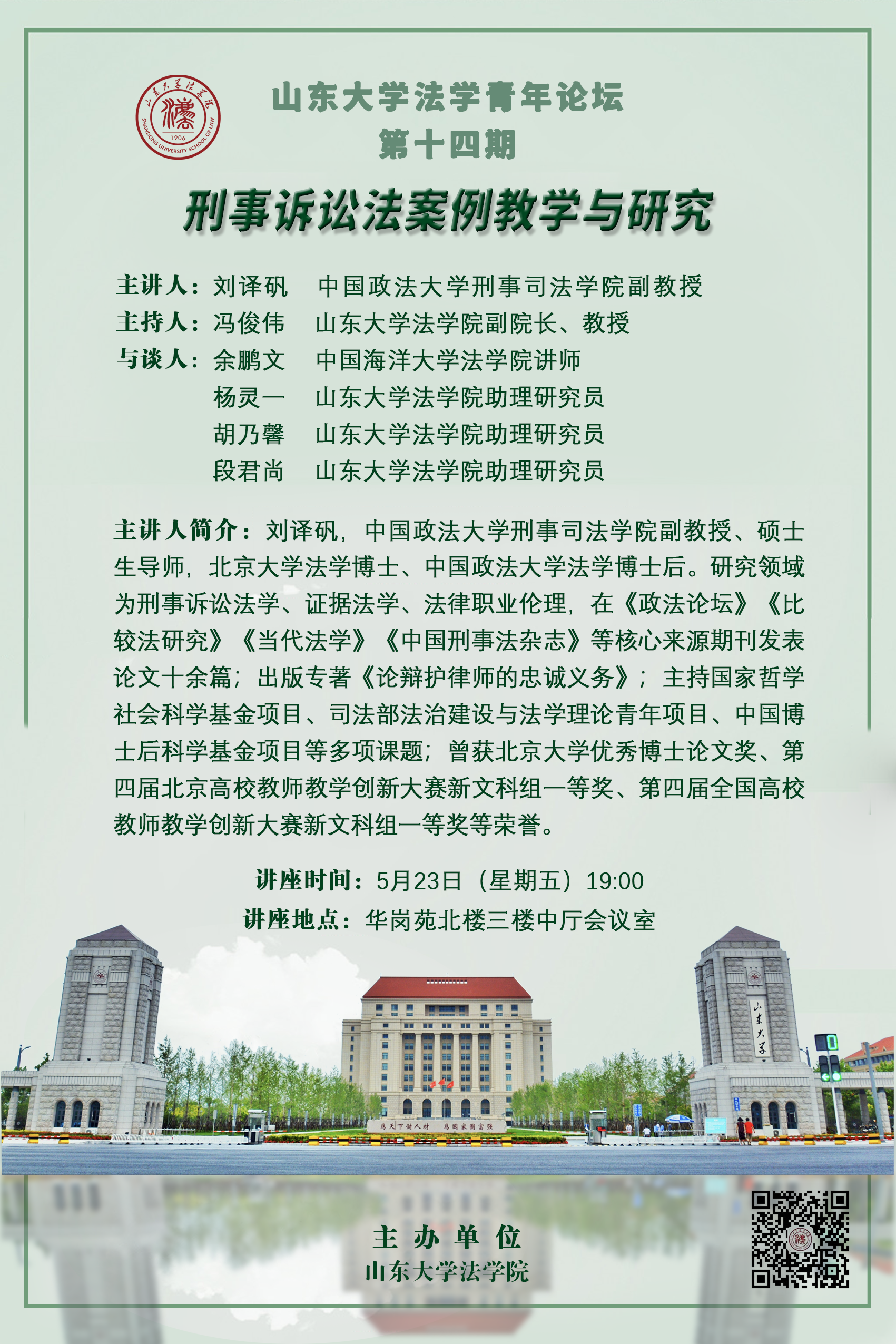 讲座预告 | 红足—世足球网官方网站法学青年论坛第十四期:刑事诉讼法案例教学与研究