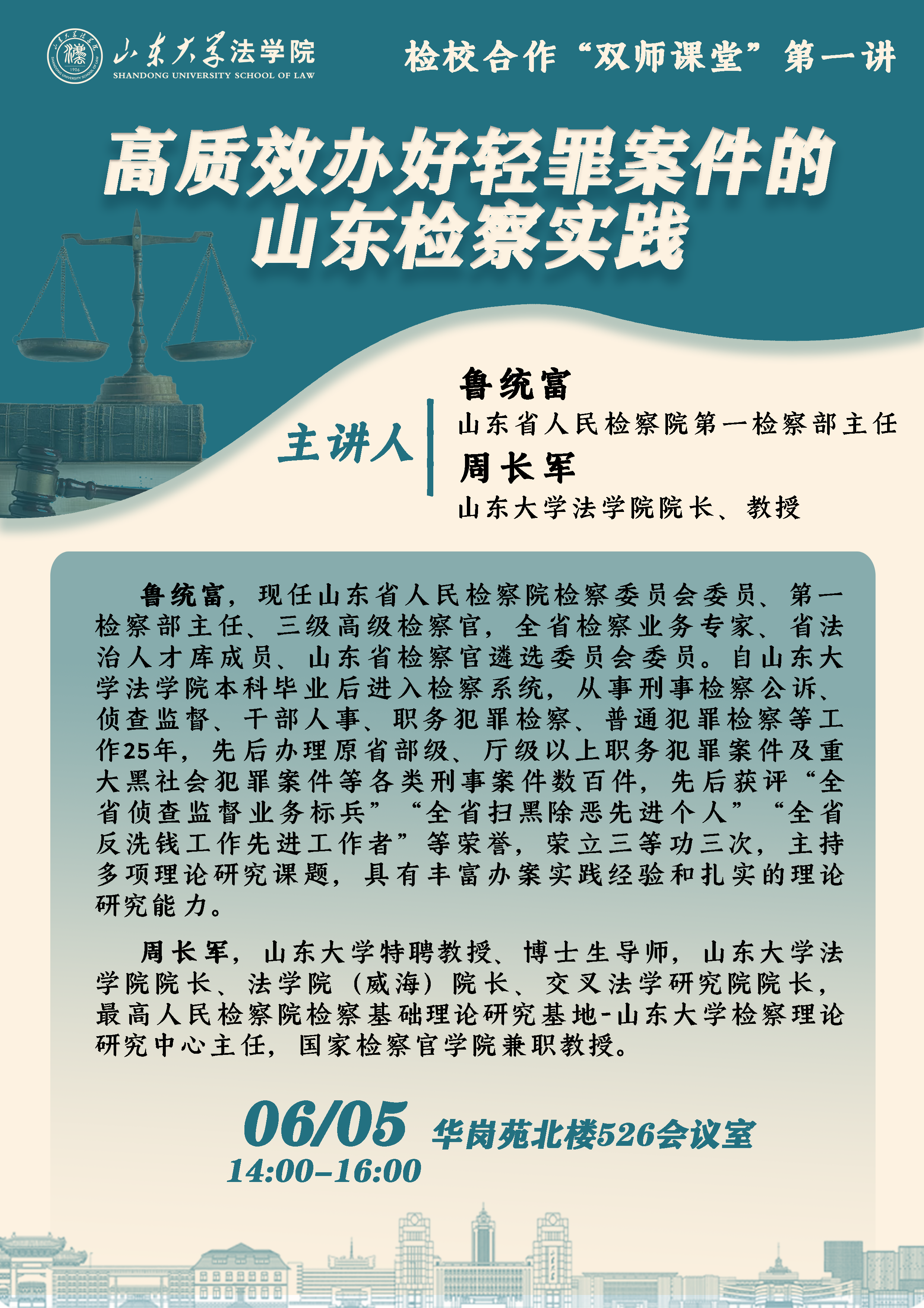 讲座预告|检校合作“双师同堂”第一讲:高质效办好轻罪案件的山东检察实践