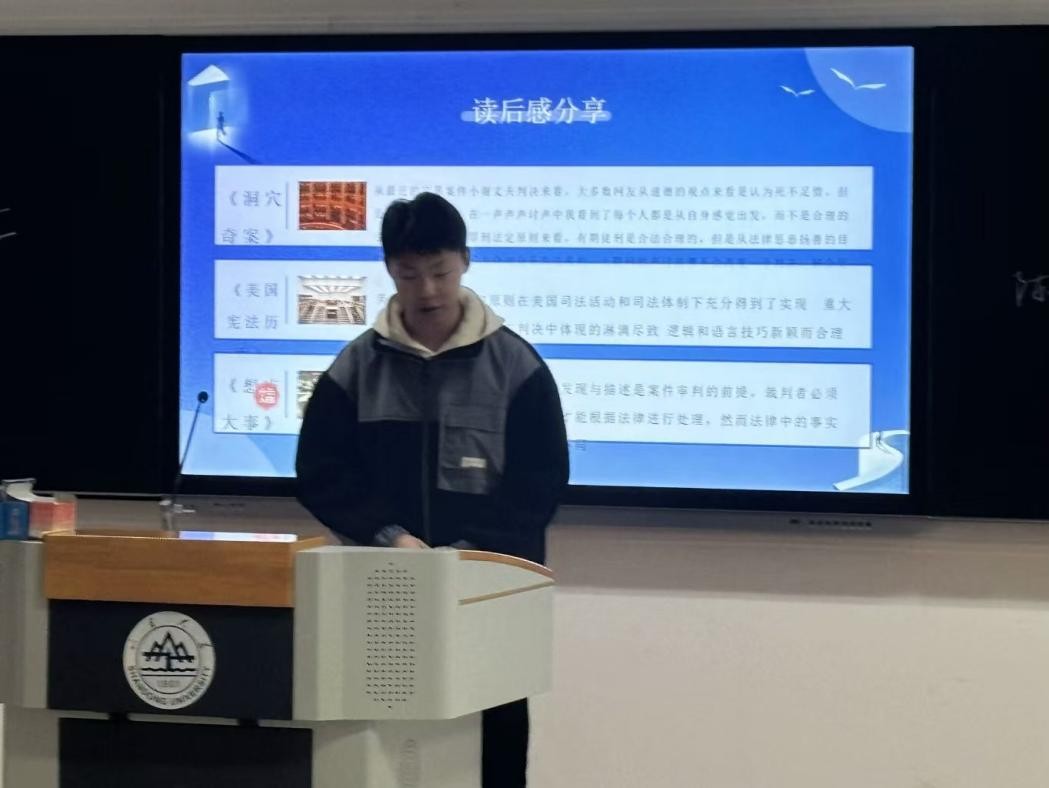 寒假期间,同学们在书海中遨游,收获颇丰。在读书分享环节中,何宜航同学积极分享了自己的读书心得。通过阅读法学相关的课外读物,同学们不仅深化了对专业的理解,还拓宽了视野,汲取了知识的力量。每一次的读书分享与思想碰撞,都让大家有所收获,共同成长。