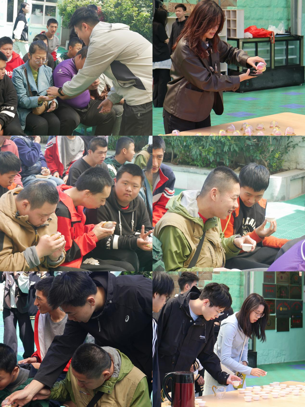 随后,同学们共同走进同行之家特殊儿童发展中心,与孩子们一同品茶,分享亲手制作的茶果子。同学们用通俗的语言讲述文化故事,用温暖的互动传递劳动精神,传承非遗的种子在孩子们的心中悄然发芽。