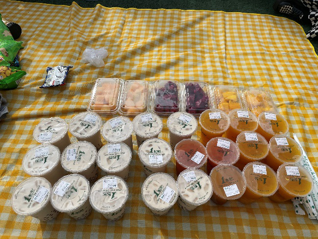 在活动开始之前,班委同学各司其职,有人负责布置场地,有人负责采购零食与奶茶。不需多时,野餐布上已经遍放美食饮料。